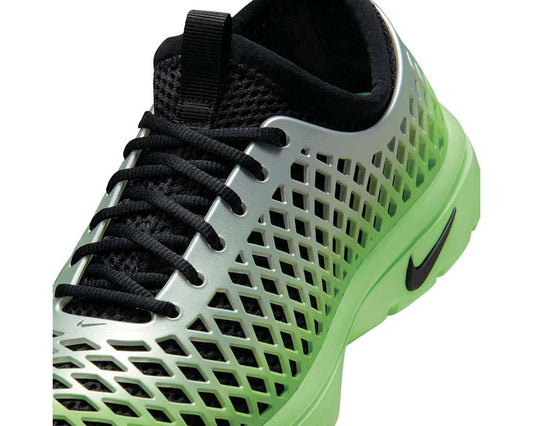 Scarpe basse in pelle con effetto lenticolare e design sportivo.