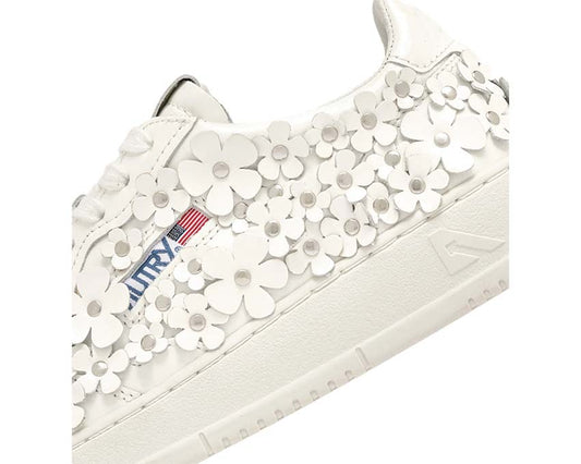 Scarpe da ginnastica basse da donna in pelle con dettagli floreali