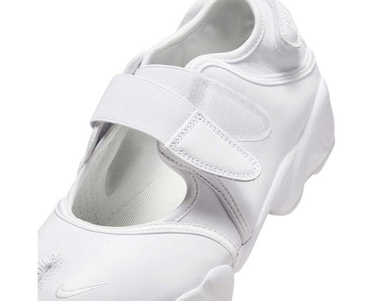 Scarpa sportiva da donna in tessuto bianco con design aperto.